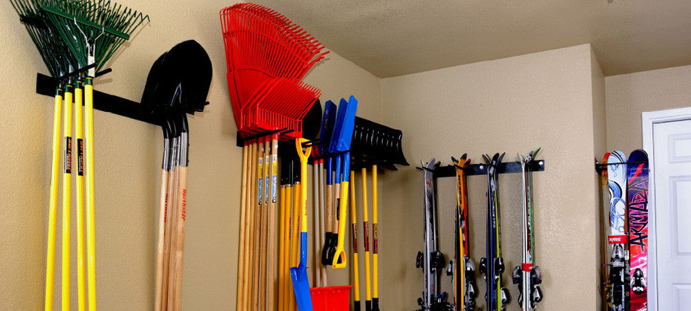 Store all your garage items on these easy to install racks - shovels, rakes, ladders, extension cords, skis, snowboards, snowshoes, bikes, baby strollers, lawn chairs, canoes, saddles, etc.