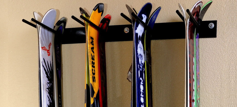 Mounting hardware included. 34 inches in length with over 45 inches of hanging space. Can hold 8 pair of skis with all 16 Poles. Excellent for skis, snowboards, wake boards, snowshoes.